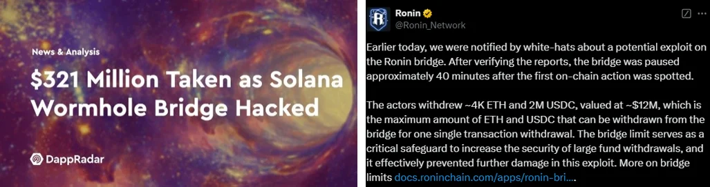 이러한 문제는 체인 간 정보교환 과정에서도 동일하게 발생하며, 대표적인 예시가 잊을만하면 발생하는 브릿지 프로토콜 해킹 사건들이다.