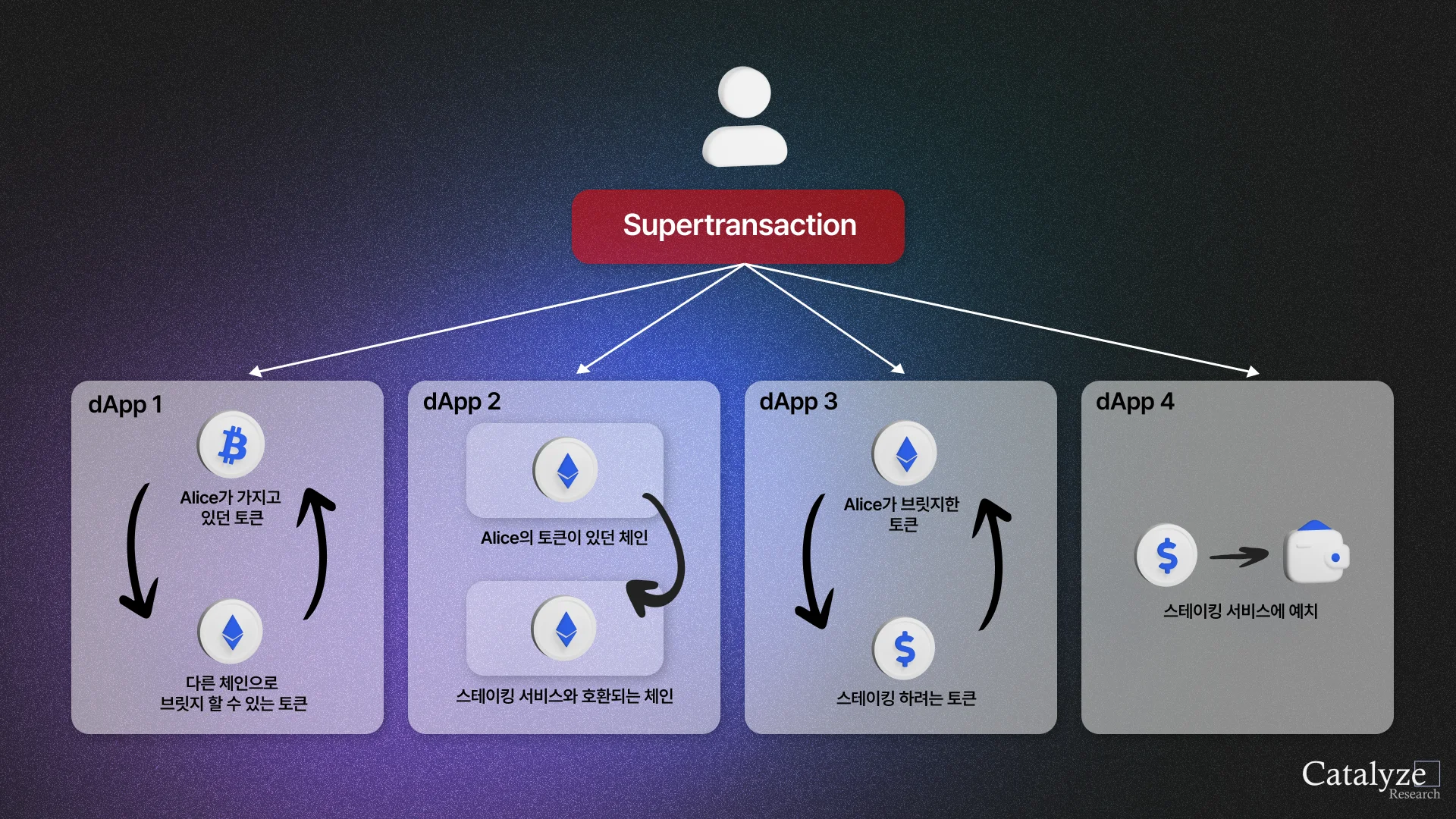 슈퍼트랜잭션을 통해서는 브릿지 이전에 유저가 원래 이용하던 체인(source chain)에서 필요한 복잡한 과정들을 먼저 진행할 수 있기 때문에 체인 간 트랜잭션의 처음부터 끝까지를 편리하게 수행할 수 있게 된다.