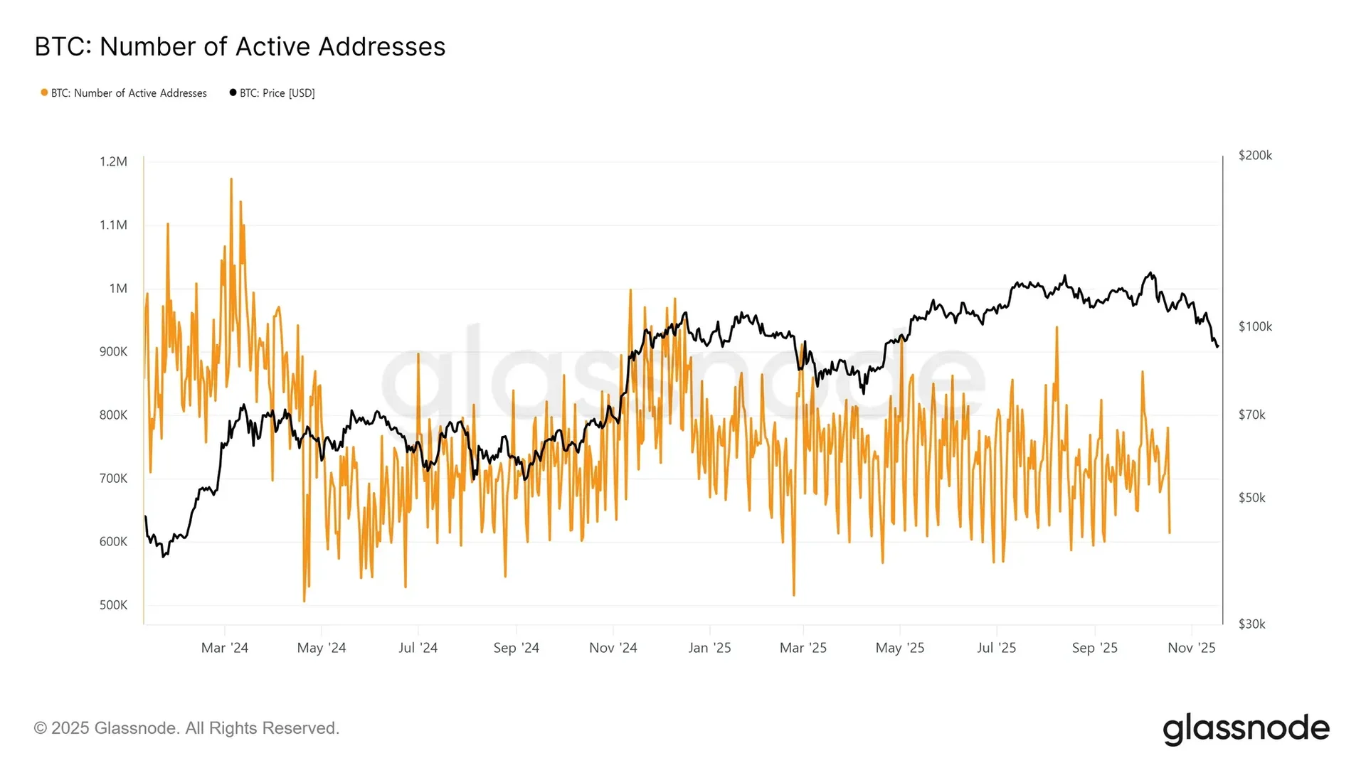 하지만 '가격'이 아닌 '네트워크 본연의 활성도'를 들여다보면 이야기는 달라진다. 가격 폭등에도 불구하고, 실사용자 지표(활성 주소)와 활동량 지표(트랜잭션)는 정체되었다.