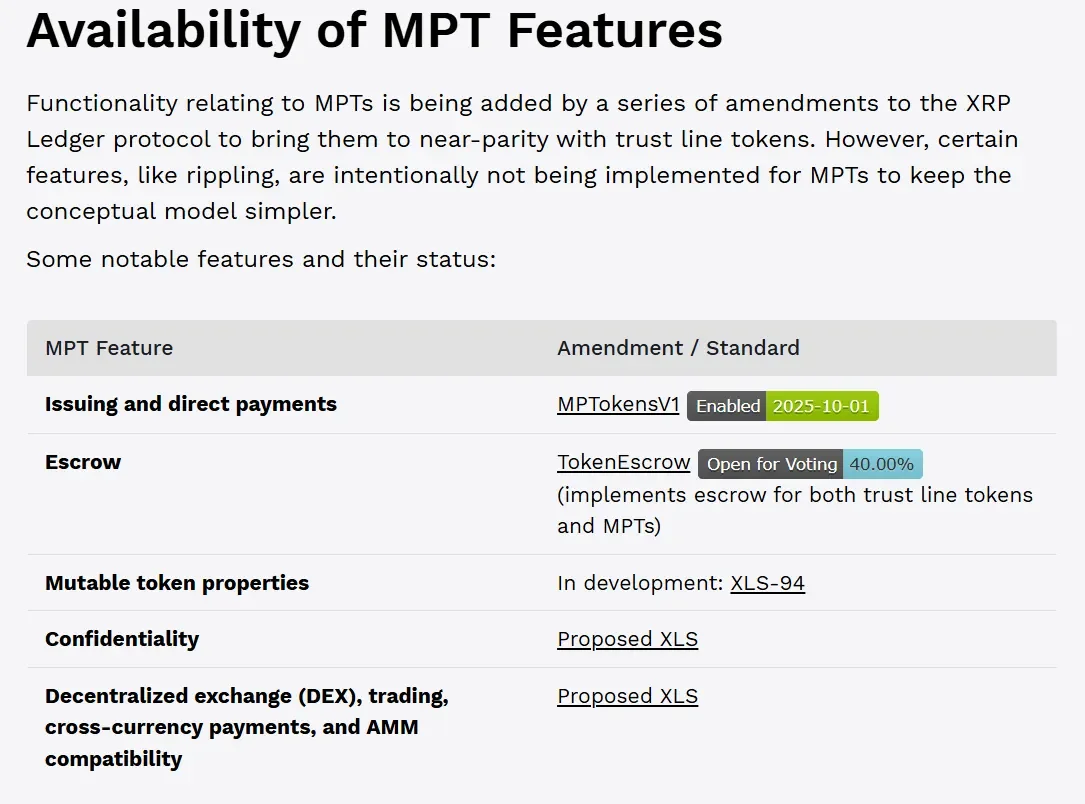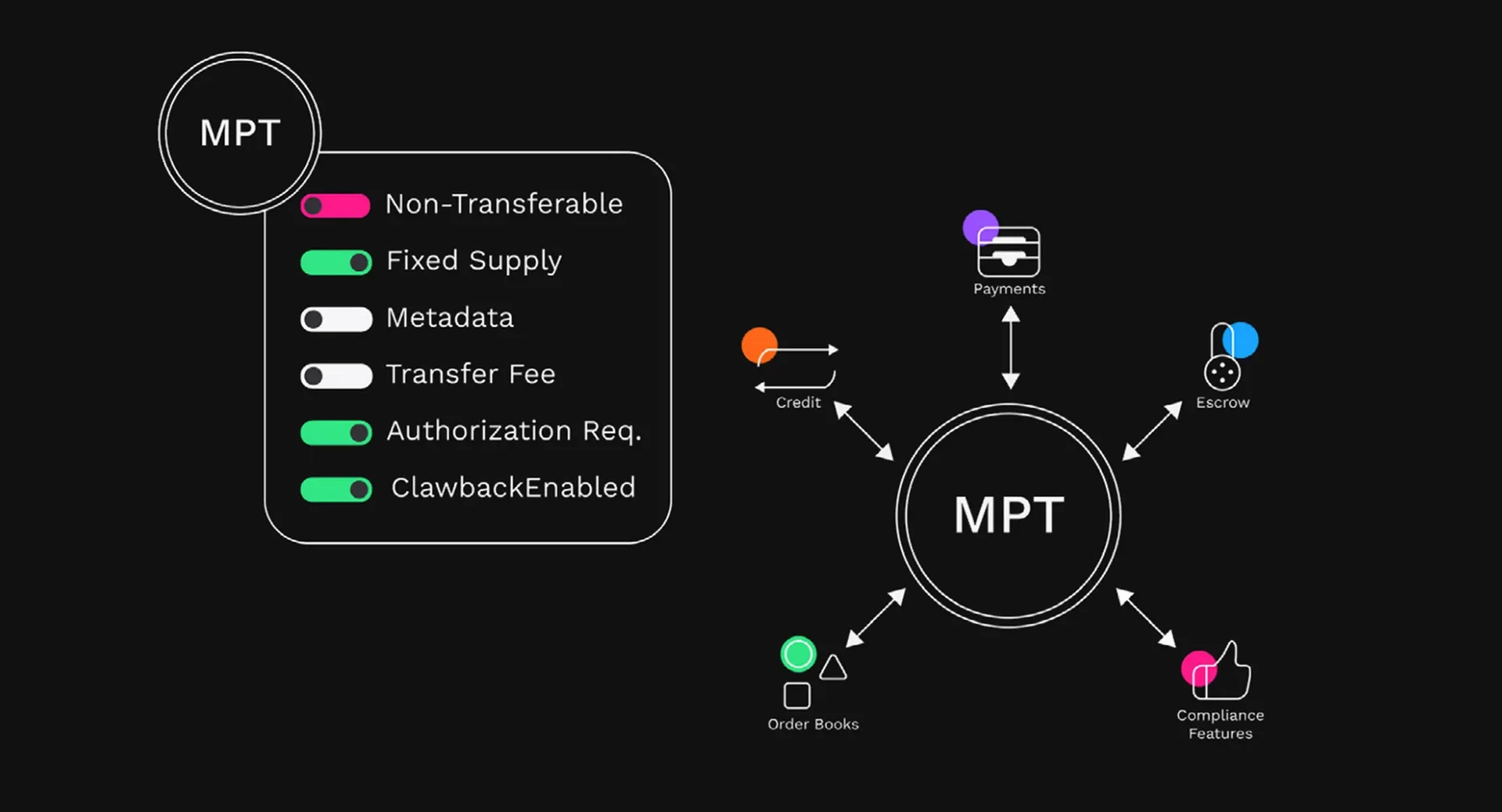 2) RWA를 위한 차세대 표준: MPT (Multi-Purpose Token) MPT는 IOU의 규제 기능은 계승하되, RWA 운용에 필요한 유연성과 데이터 무결성을 강화한 최신 표준이다. 현재 DEX 지원이 개발 단계에 있으나, 향후 기관 RWA 시장의 주류(Gold Standard)가 될 잠재력을 가진다.