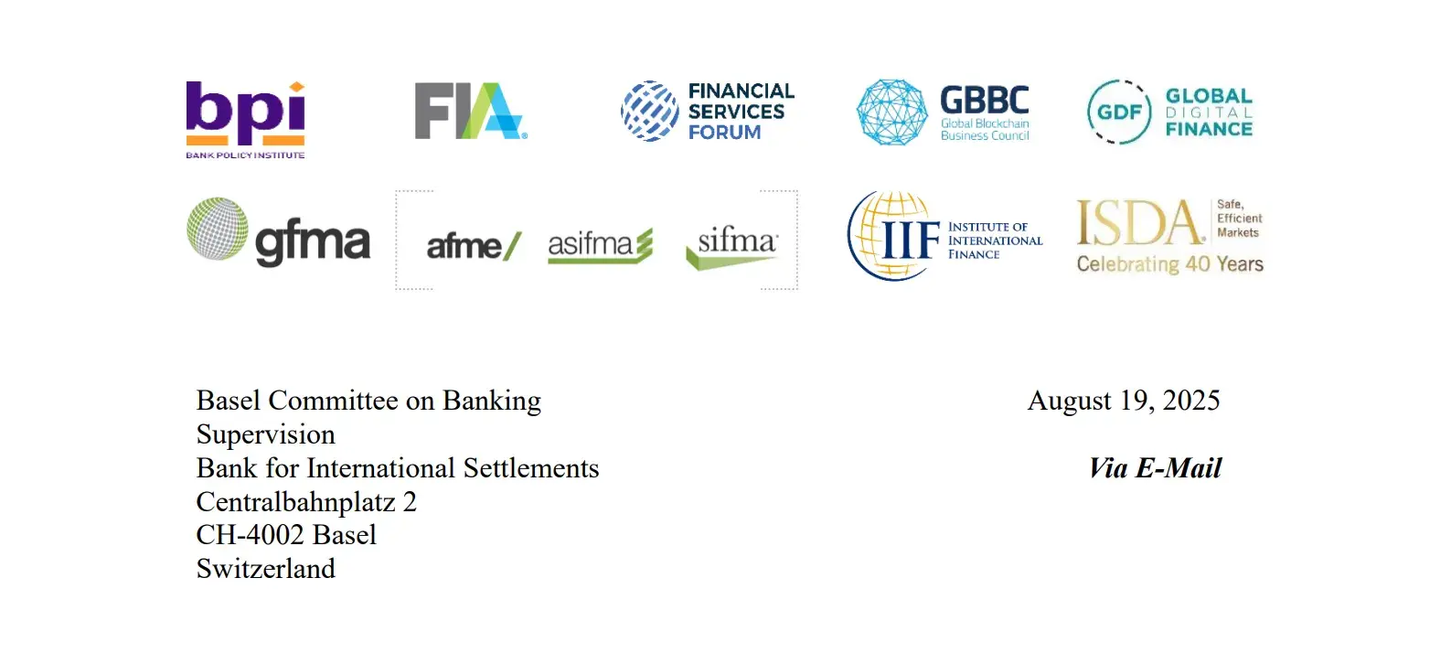 이를 반증하는 것이 2025년 8월, 유럽금융시장협회(AFME), 국제금융협회(IIF), 국제스와프파생상품협회(ISDA)를 포함한 주요 글로벌 금융거래협회들이 바젤은행감독위원회(BCBS)에 암호자산 노출 기준(SCO60)의 일시 중단 및 재조정을 촉구하는 서한을 제출한 사건이다.