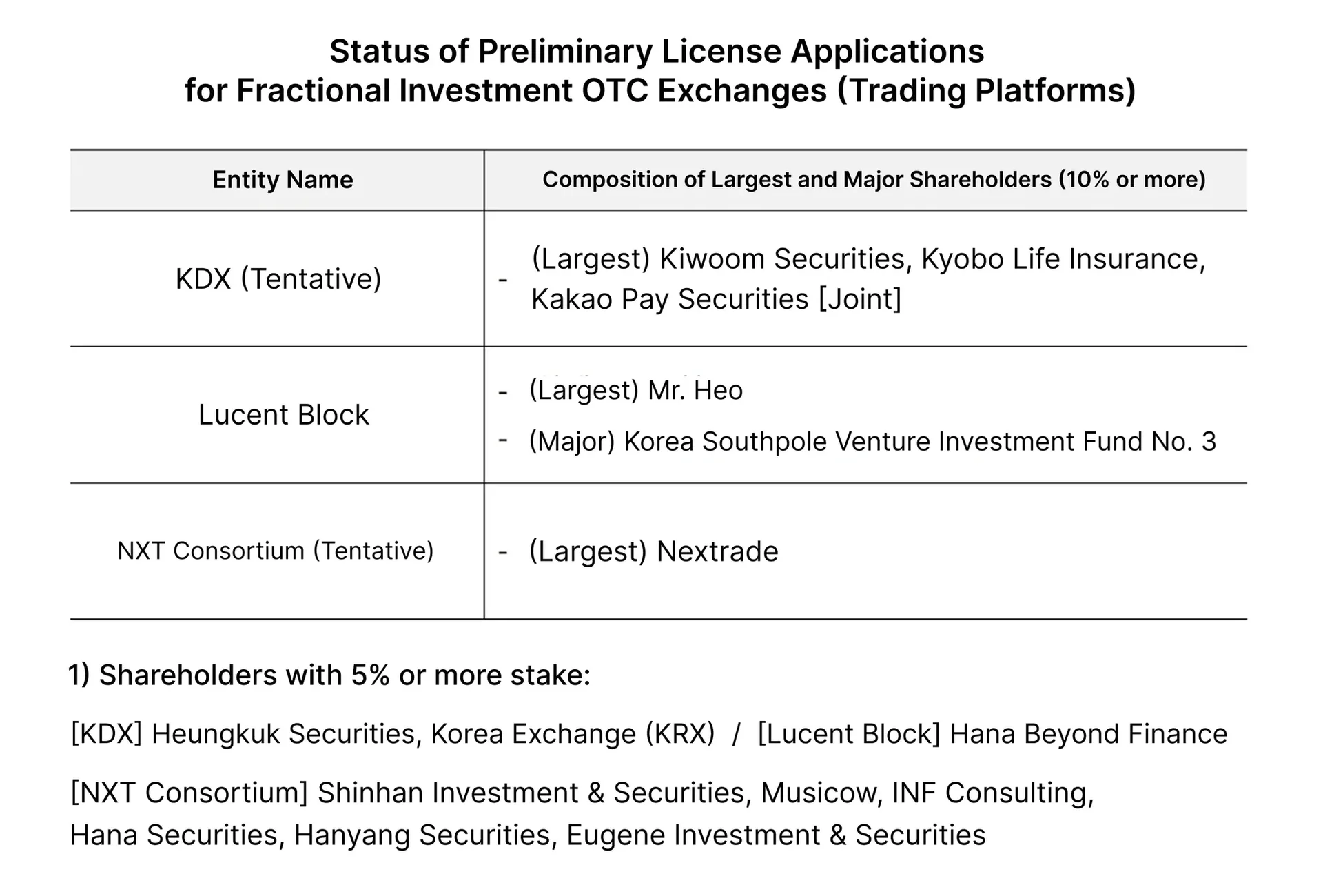NXT Consortium: An alliance centered on Nextrade and Shinhan Securities.