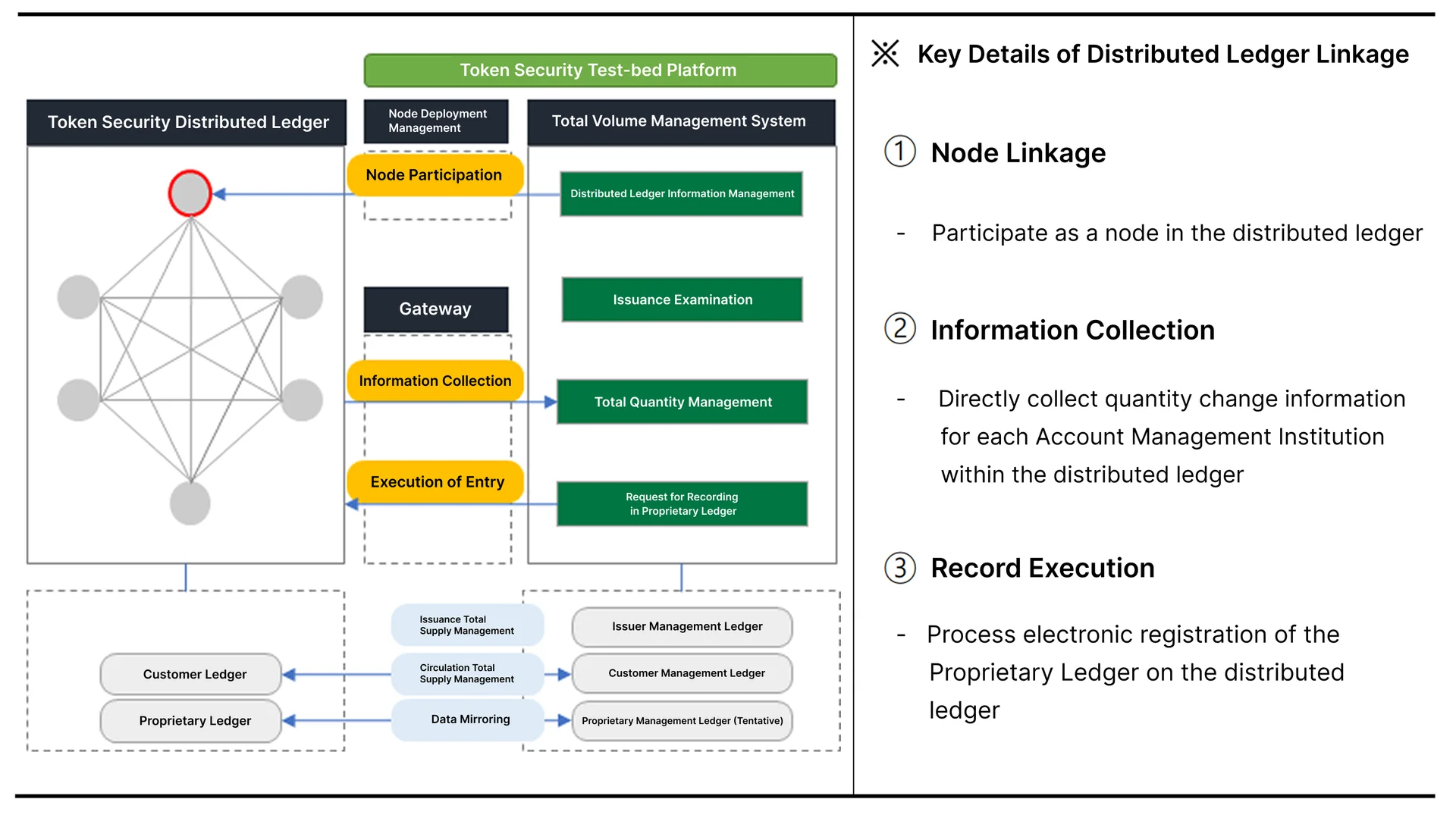 The primary objective of the KSD system is to "collect transaction information recorded on distributed ledgers to ensure the total issued volume matches the total circulation volume." While optimized for this auditing function, a "Bridge" function—which allows assets to move from Ledger A to Ledger B—is not a core part of the design.